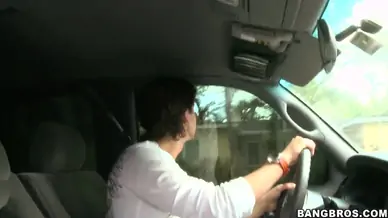 Redhead with massive tits banged in a fake taxi