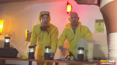 Sarah always wears her white high heels when she gets double penetrated in hardcore threesomes